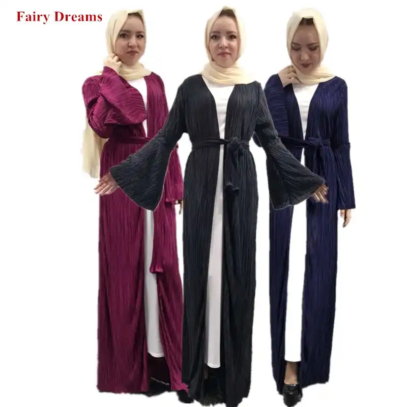أضعاف العبايات للنساء دبي معطف أسود أرجواني أحمر أخضر مسلم قفطان طويل كارديجان بوليرو الحجاب الملابس الإسلامية الحجاب 2019 Aliexpress